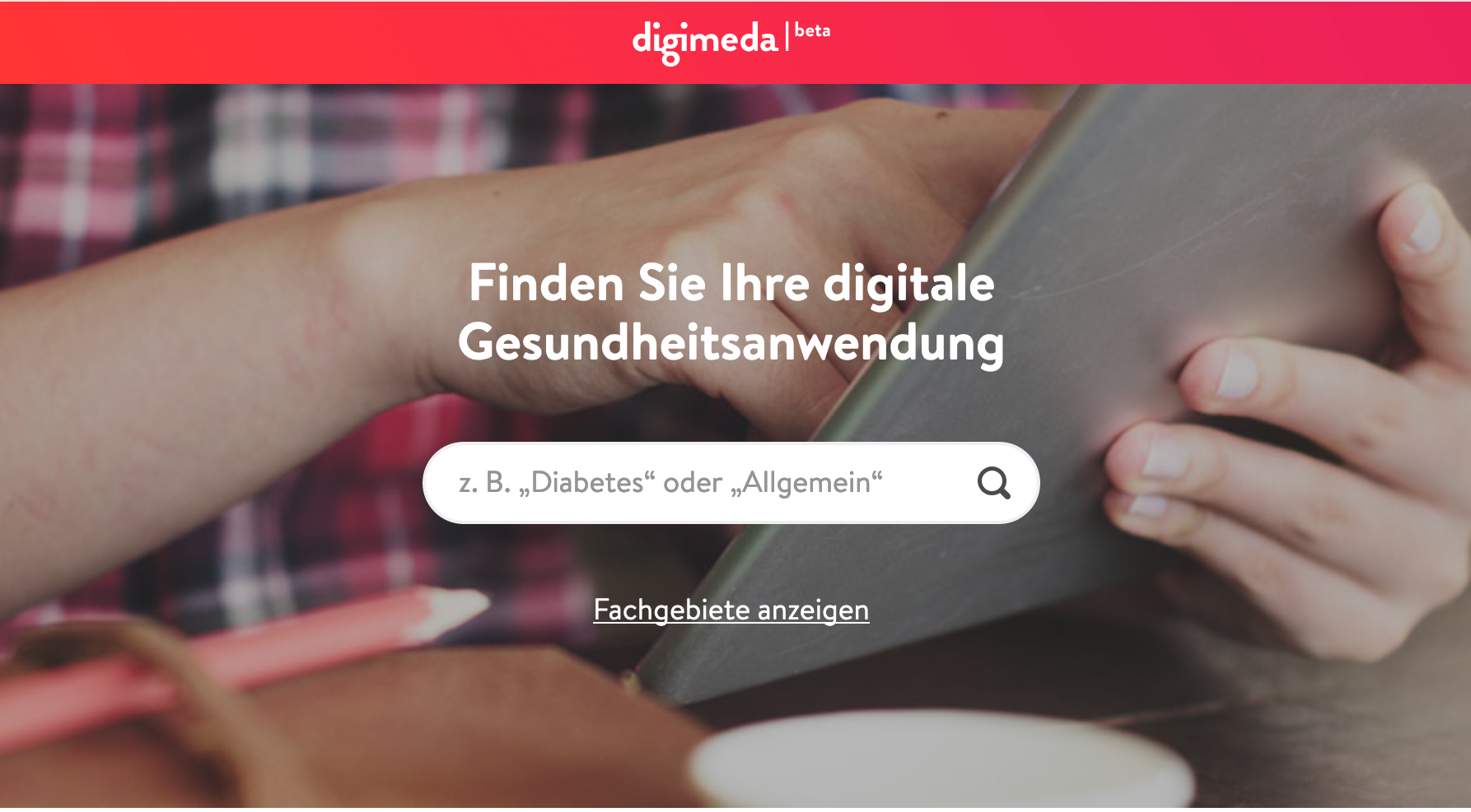 Mit digimeda (beta) gibt es eine Webseite, auf der man nach der Eingabe seiner Krankheit passende deutschsprachige Anwendungen finden kann. digimeda wird betrieben und finanziert von der Spirit Link GmbH, die auf der Webseite darauf hinweist, dass das Ranking der enthaltenen Gesundheitsanwendungen nicht durch finanzielle Zuwendungen beeinflußt wird und man an einem Geschäftsmodell für eine langfristige Finanzierung von digimeda arbeitet.